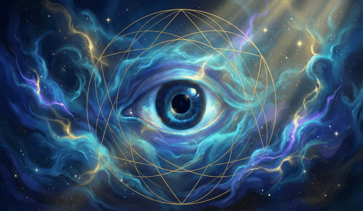 Symbolic representation of the Hamsa hand and Evil Eye combined as a spiritual shield against envy and ill-will.